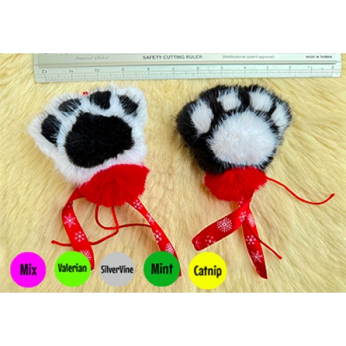 Purrs Chrstmas Cuddle Paws faux fur Cat Toy or ClipOn  -  Marinated in your choice of herb Flavours Silvervine, Mint, Valerian, Catnip, PowerMix